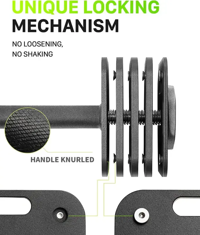 מנגנון הברגה ייחודי: המשקולות מצוידות במנגנון הברגה בפטנט, המאפשר התאמה מהירה ומדויקת של המשקל, ללא צורך בציוד נוסף או החלפת משקולות.